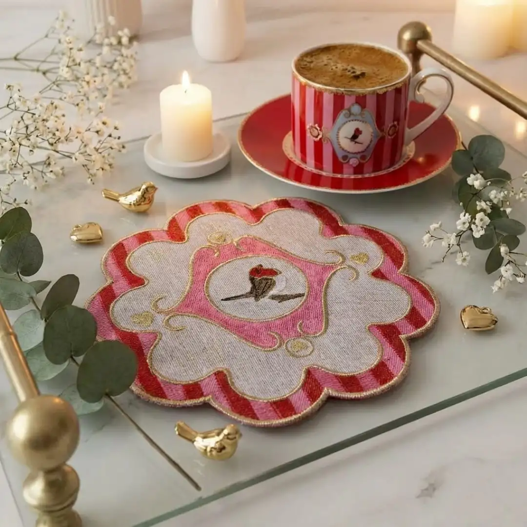 2 Adet Kırmızı Pip Studio Uyumlu Nakışlı Kuş Detaylı Sunum ve Kokteyl Peçetesi Şık Kuş detaylı nakışlı peçetelerimizle sunumlarınıza zarafet katın! Kusursuz ve mükemmel işçilikteki bu peçete, özel günleriniz ve günlük kullanımınız için çok ideal bir seçim. Hemen siparişinizi verin!
