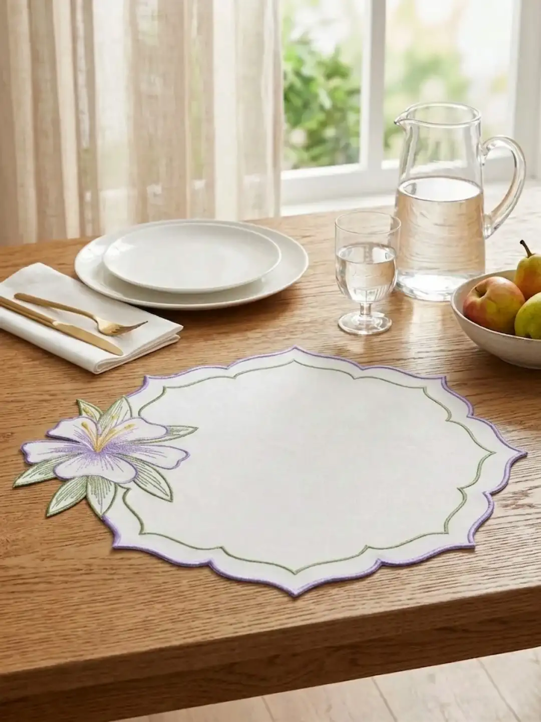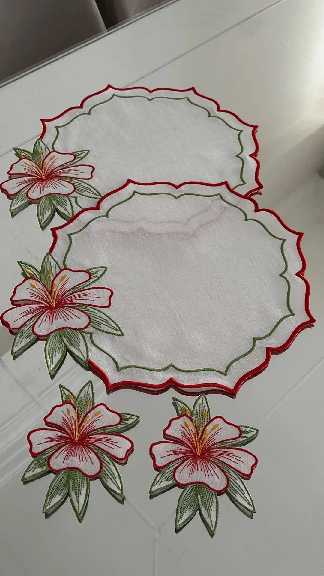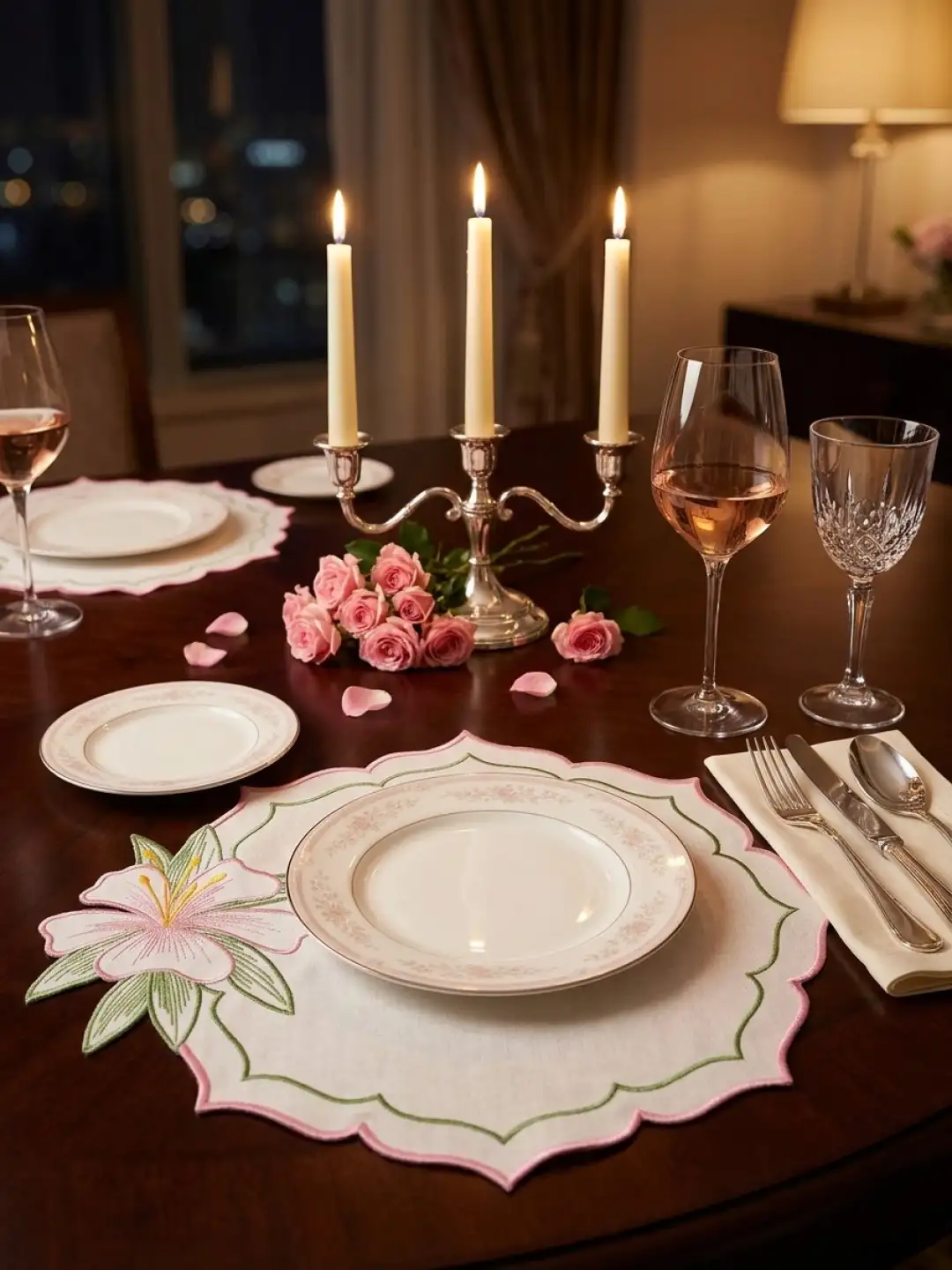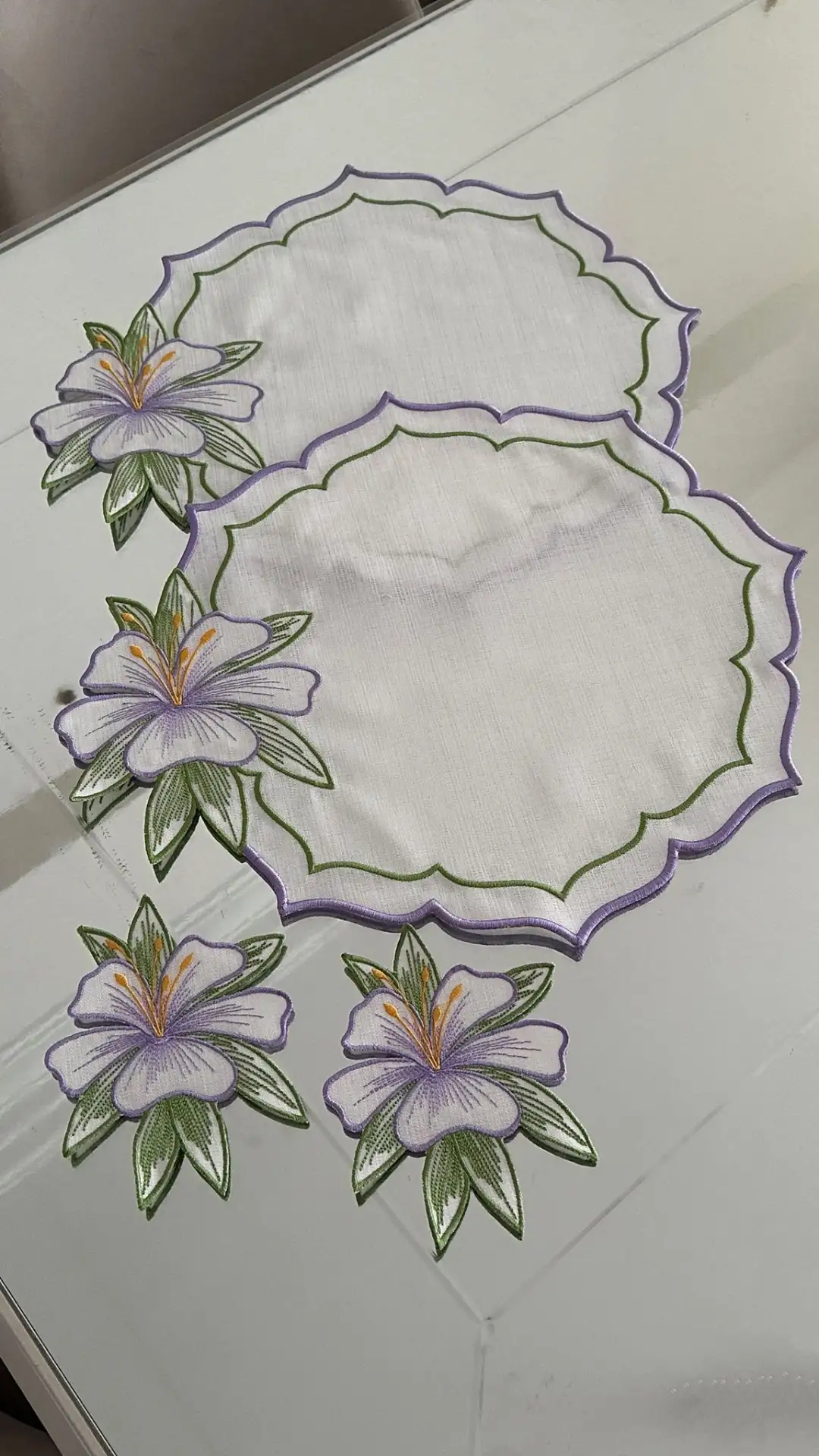 Sofralarınızda Bahar Esintisi: 2 Kişilik Zambak Nakışlı Sunum Seti