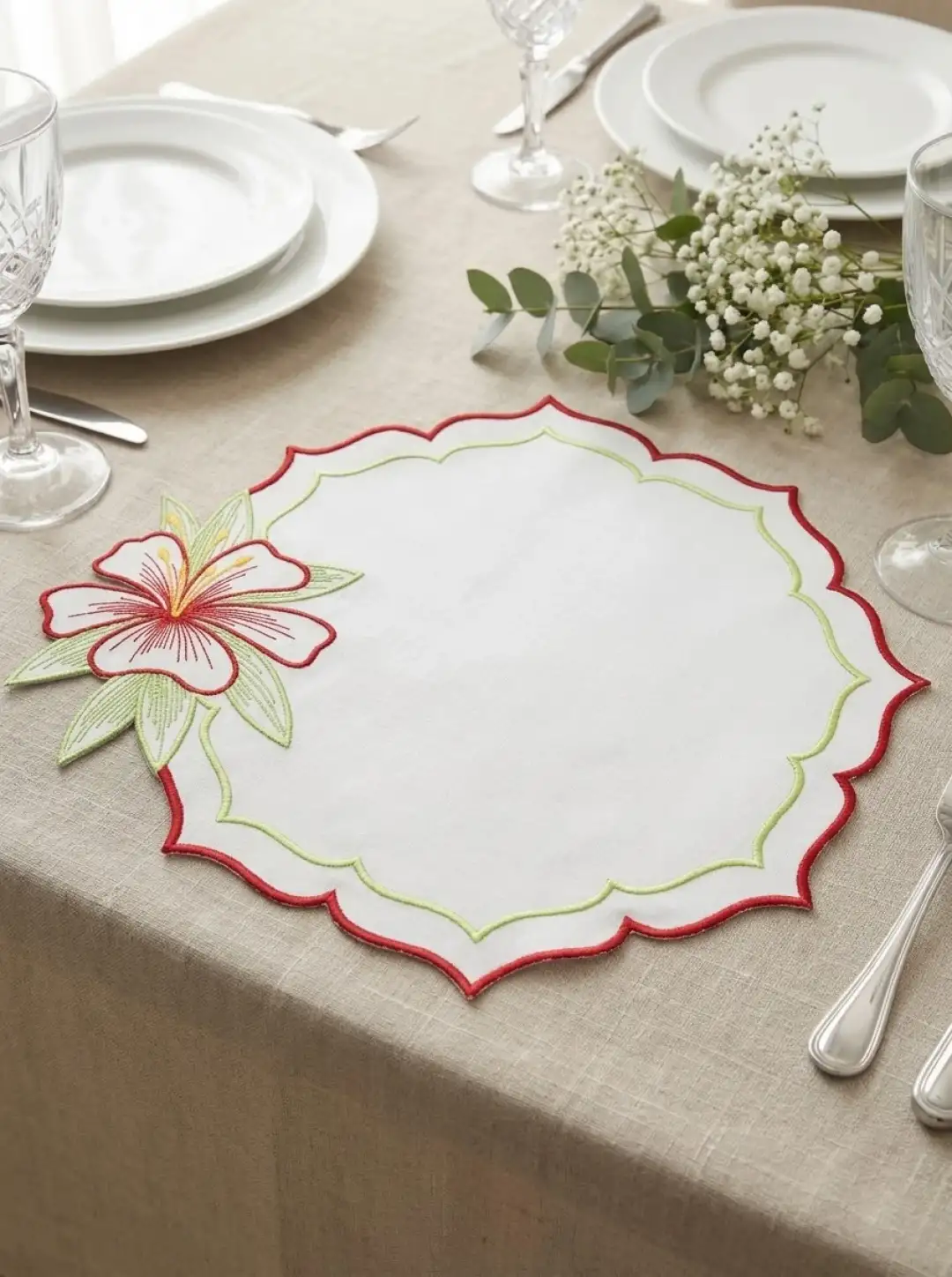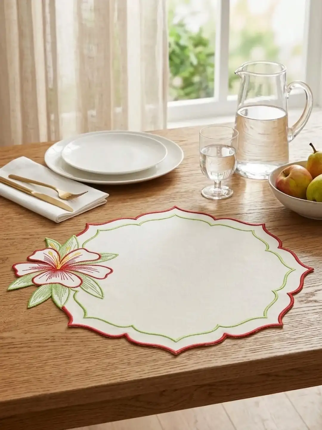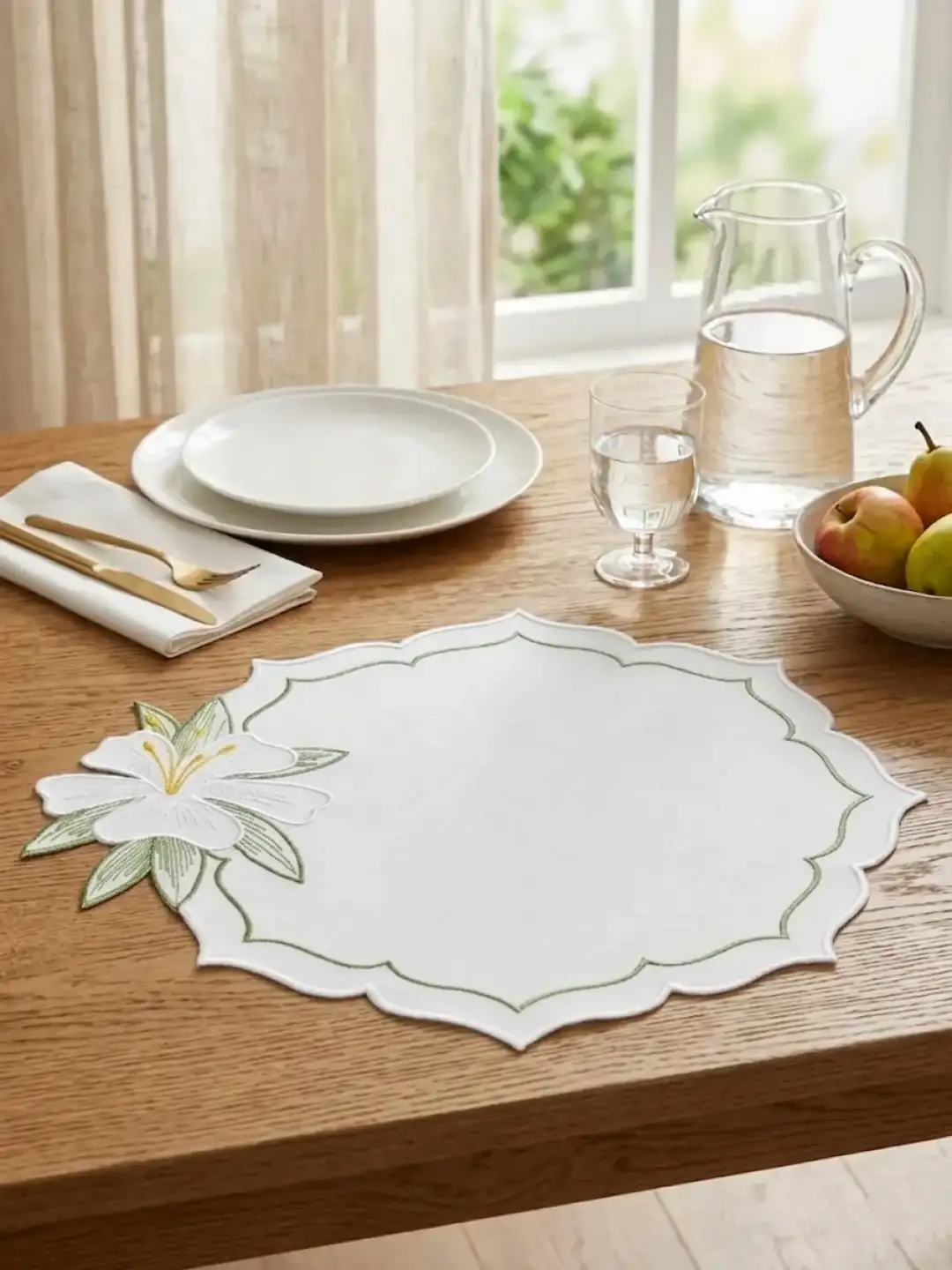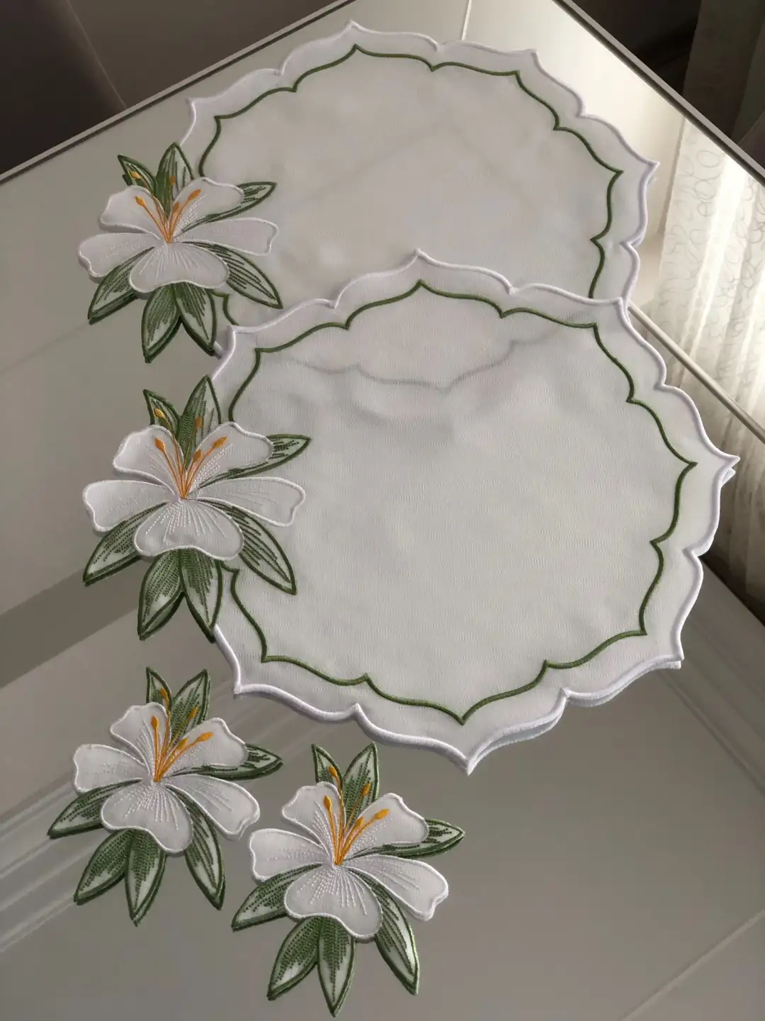 Sofralarınızda Bahar Esintisi: 2 Kişilik Zambak Nakışlı Sunum Seti