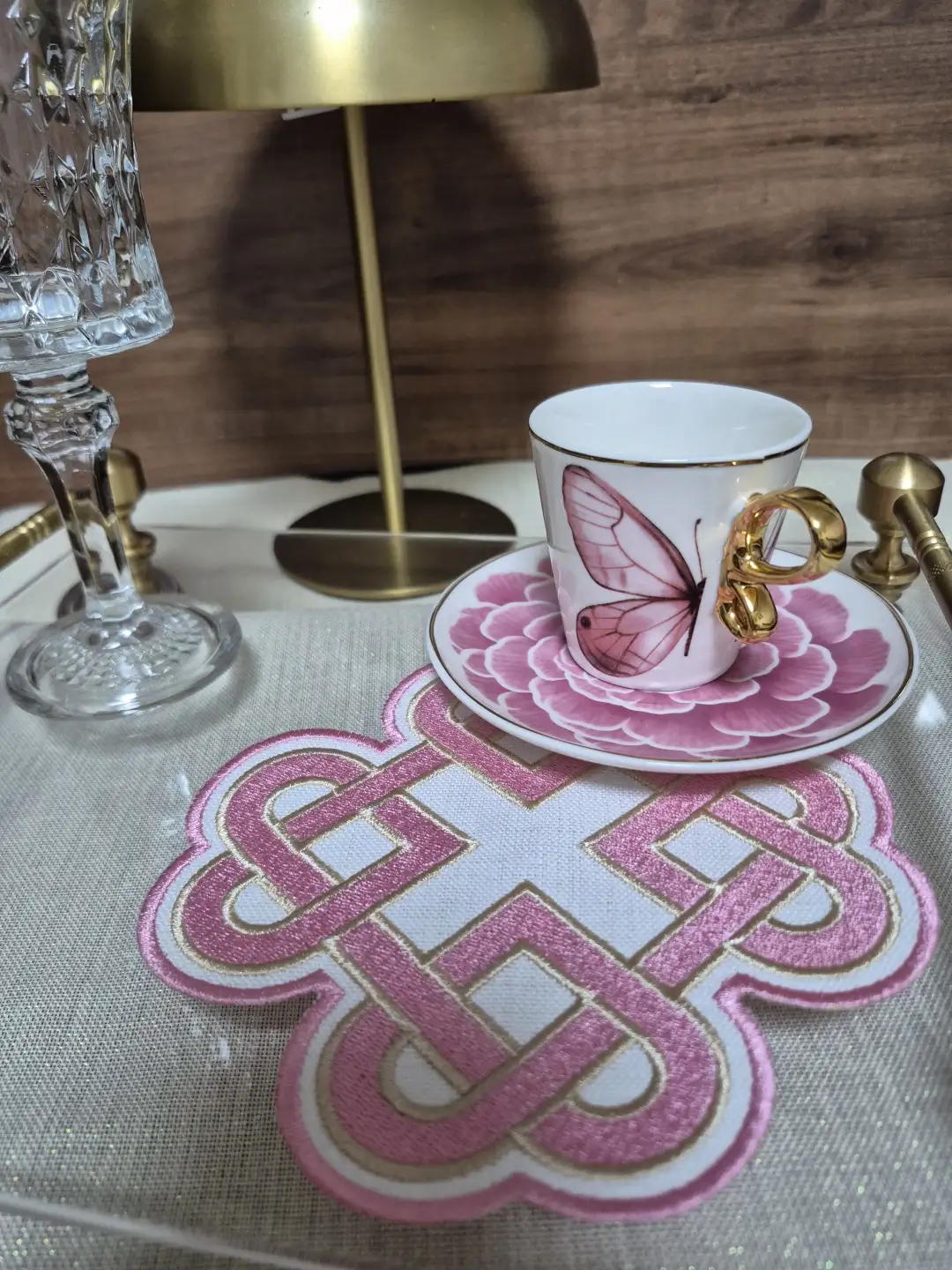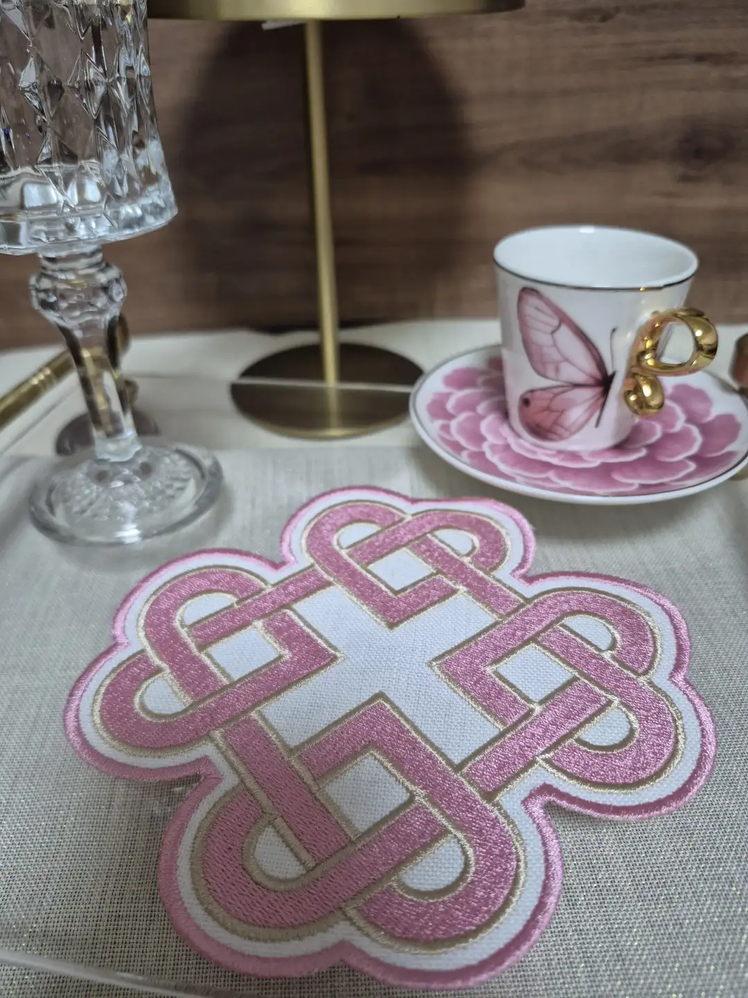 Sofralarınıza zamansız bir zarafet katın. 'Sonsuz Aşk' koleksiyonumuzun bir parçası olan bu sunum peçetesi, kadim Kelt Düğümü (Celtic Knot) motifini modern nakış teknolojisiyle birleştiriyor. İç içe geçmiş kalplerin oluşturduğu bu eşsiz tasarım, bağların kopmazlığını ve ebedi sevgiyi simgeliyor."