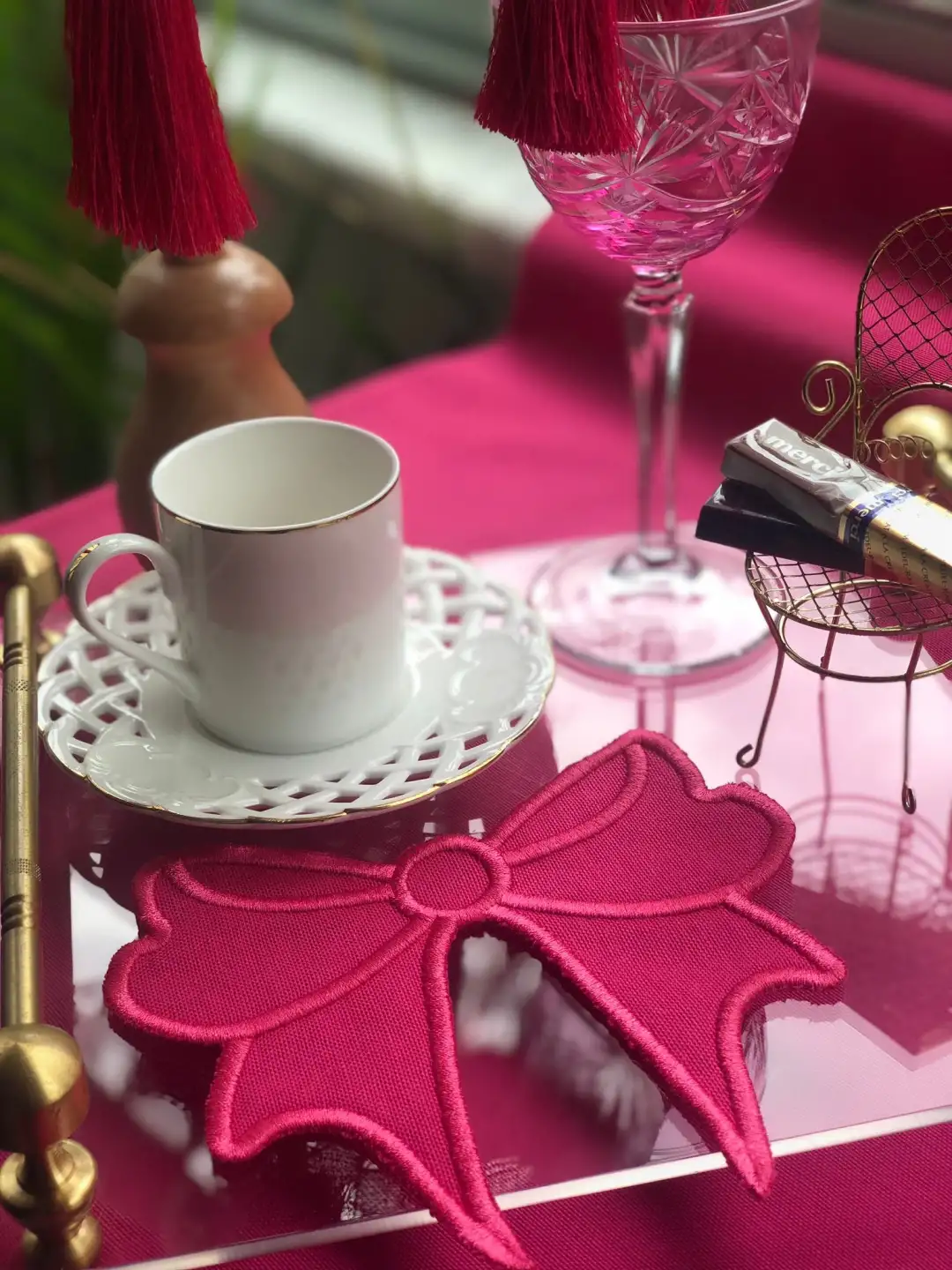 Agbtrend Fuşya Fiyonk Nakışlı Sunum ve Kokteyl Peçetesi Şık fiyonk nakışlı peçetelerimizle sunumlarınıza zarafet katın! Kusursuz ve mükemmel işçilikteki bu peçete, özel günleriniz ve günlük kullanımınız için çok ideal bir seçim. Hemen siparişinizi verin!