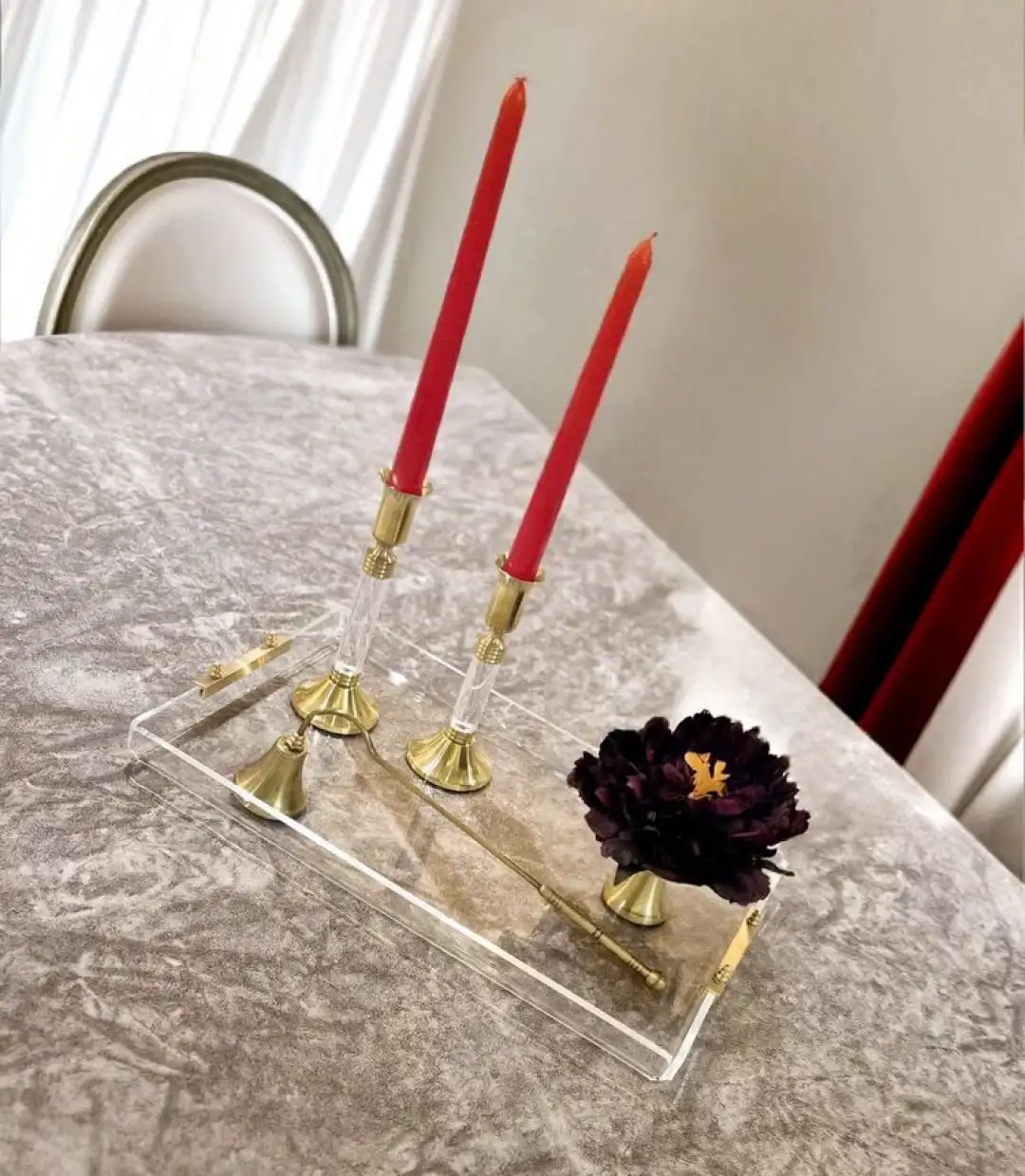 Agbtrend GOLD TRAY -L- Dekorasyon ve Sunum Tepsisi ile sofralarınıza ve evlerinize şıklık katın! %100 pirinç ve 1. Sınıf akrilikten üretilen bu tepsi, zarif tasarımı ve dayanıklı yapısı ile göz alıcı bir sunum deneyimi sunuyor. Kenarları 39 x 24cm Yükseklik: 2cm ölçüleri ile geniş bir kullanım alanı sunan tepsi, kahve, çay, atıştırmalıklar, meyve gibi çeşitli ikramları şık bir şekilde sergilemenizi sağlar. Pamuklu, nemli bir bez ile kolayca temizlenebilen Gold Line Tray L Sunum tepsiniz, ev dekorasyonunuza şık bir dokunuş katacak.
