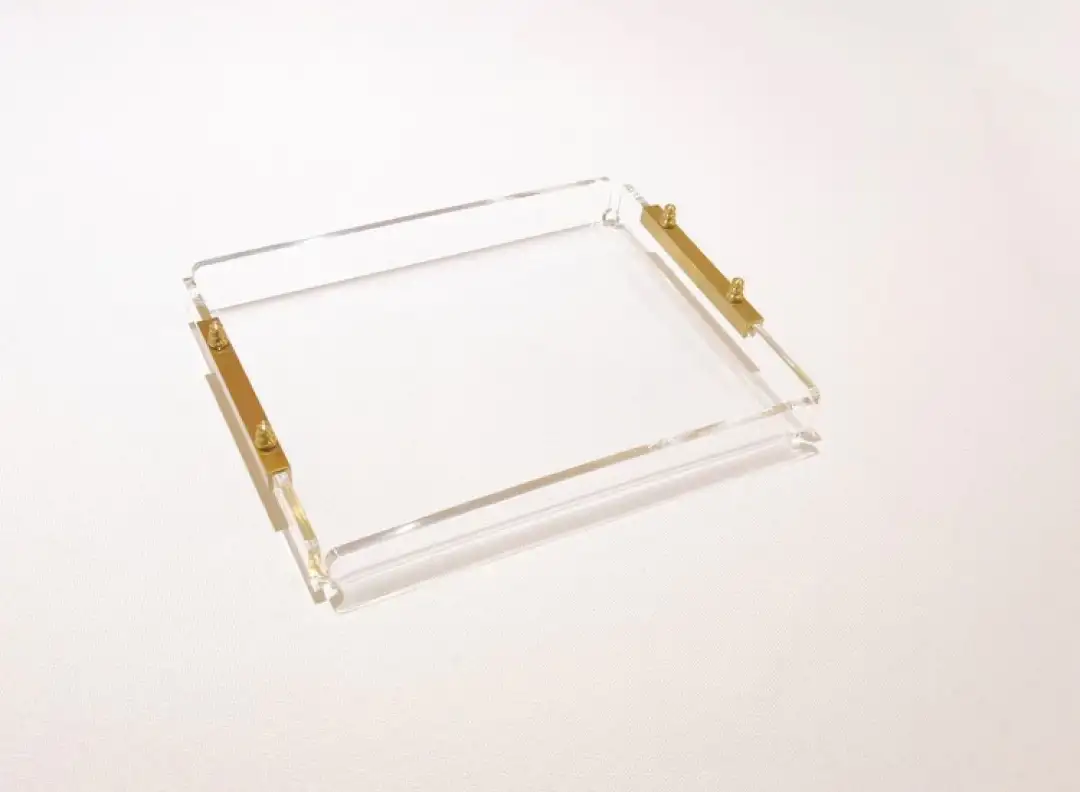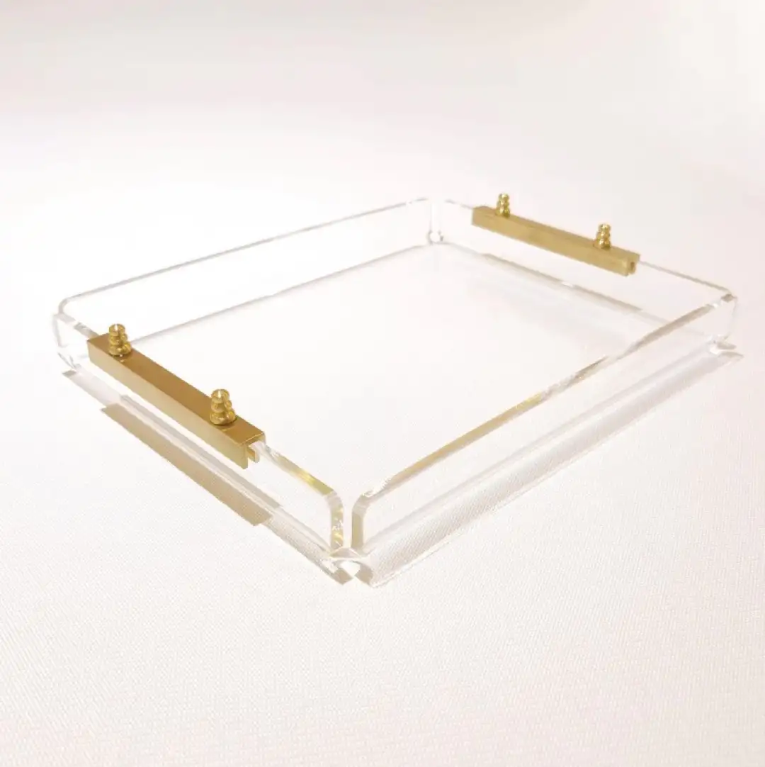 Minik boyutunda büyük şıklık! Agbtrend GOLD TRAY -S-, sunumlarınızı ve dekorasyonunuzu bir üst seviyeye taşıyacak zarif bir tepsi. %100 pirinçten üretilen şık kulpları ve 1. sınıf şeffaf akrilik yapısıyla, hem modern hem de sofistike bir tarz sunuyor. 23x18 cm boyutlarıyla, küçük alanlar için ideal olan bu tepsi, kahvenizi, takılarınızı, mumlarınızı veya diğer dekoratif objelerinizi şık bir şekilde sergilemenizi sağlar.