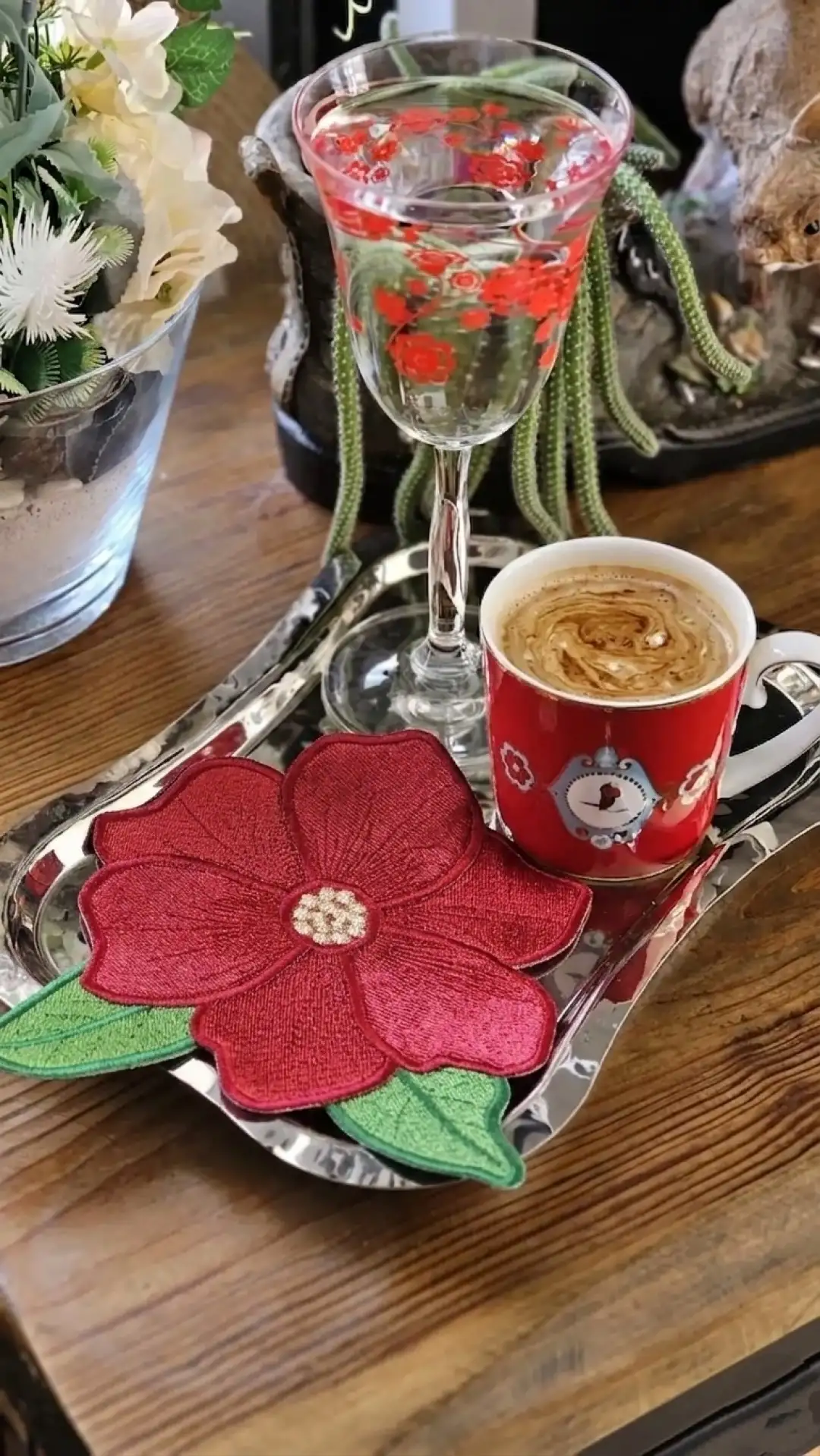 Özellikle çiçek desenli porselenlerle ve gold detaylı fincanlarla eşsiz bir uyum yakalayan bu peçeteler, kahve saatlerinizi bir sanat seremonisine dönüştürecek.